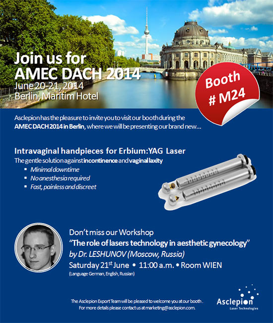 Компания Асклепион приглашает Вас посетить I Европейский конгресс по антивозрастной медицине где на стенде компании будет представлена новая разработка - интравагинальный наконечник для эрбиевого Erbium:YAG лазера